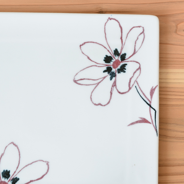 【波佐見焼 一龍陶苑】アネモネ(赤)正角プレート